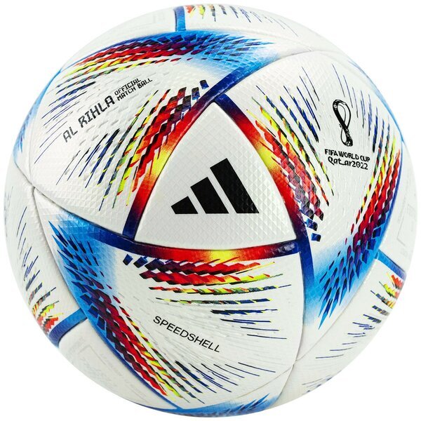Мяч Adidas World Cup 2022 называется «Rihla» (Rihla - рихла — это арабское слово, обозначающее книгу или рассказ о путешествии). Логотип ЧМ-2022 является лентой, символизирующей бесконечность и гармонию. На самой ленте изображены традиционные арабские орнаменты. Текстурная поверхность мяча выполнена из высококачественной синтетической кожи (полиуретан), а бутиловая камера надежно удерживает воздух.Одним из главных нововведений при разработке мяча ADIDAS WC22Rihla PRO является технология Speedshell, направленная на увеличение скорости полета и вращения мяча для достижения отличной аэродинамики и идеального удара. Мяч изготовлен по технологии термосшивки (термосклеивания) панелей, благодаря которой результаты тестов мяча на поглощение влаги и сферичность показывают значения, намного превосходящие самые строгие требования FIFA. Сертифкат FIFA Quality Pro (FIFA Approved), рекомендуется для профессиональных команд и клубов. Размер 5, 20 панелей.