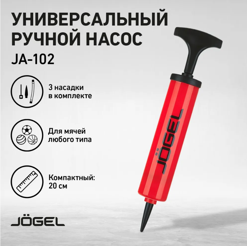 Универсальный ручной насос красного цвета с Т-образной ручкой. Эффективен при накачке мячей любых типов. В комплект входит гибкий съемный шланг, стандартная игла и насадка для фитбола.