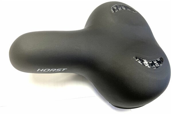 Седло 09-200823 комфортное GEL с замком 250X210мм широкое с эластомерами, 600гр, черное HORST